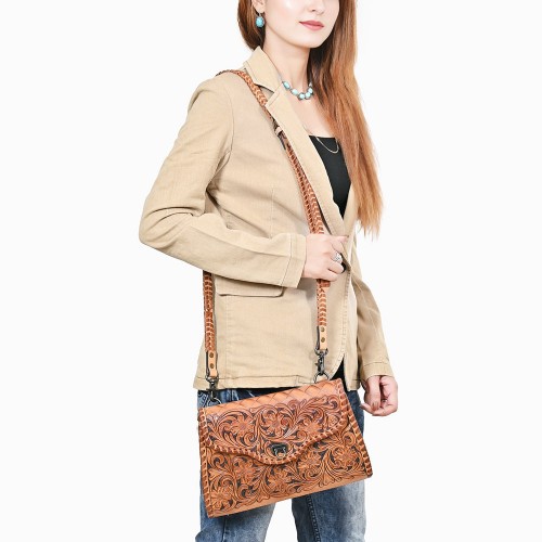American Darling Handcrafted Western Leather Crossbody Bag | Intricate Tooled Floral Design | Genuine Leather | Crossbody Purse