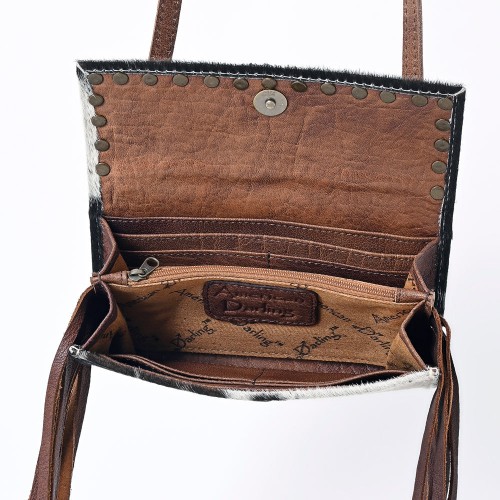American Darling Wallet Bag Hair-On Cowhide Genuine Leather Western Purse Rivetted with Fringes and YKK Zipper