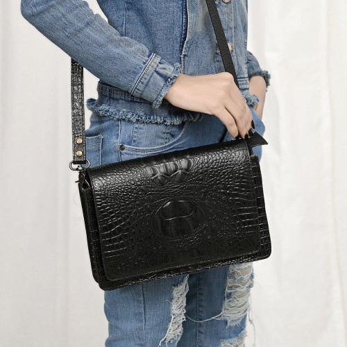 American Darling Western Crossbody Bag Crocodile Embossed Genuine Leather Slim Shoulder Purse 6.5in (H) X 11in (W) X 2.5in (D)