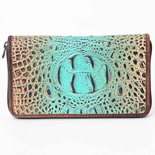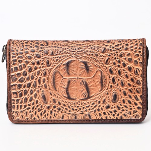 American Darling Western Leather Wallet Bag Crocodile Embossed Genuine Leather Hand Tooled 4.5in (H) X 8in (W)