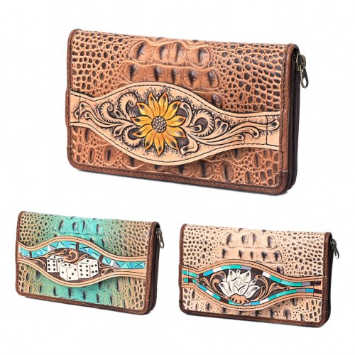 American Darling Wallet Hand Tooled Genuine Leather Women Bag Western Handbag Purse
