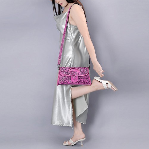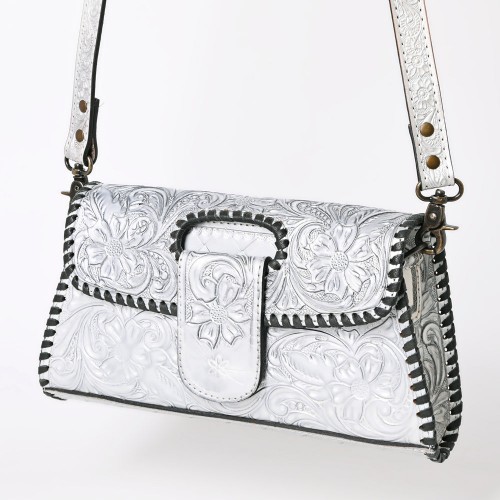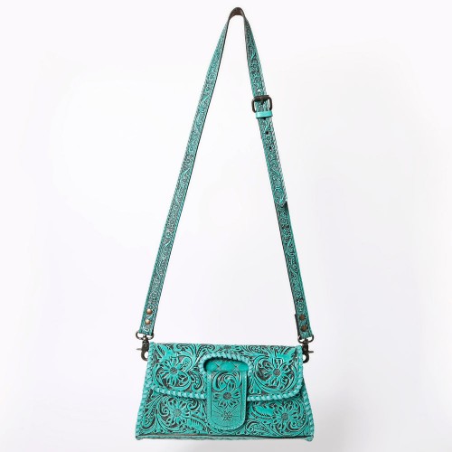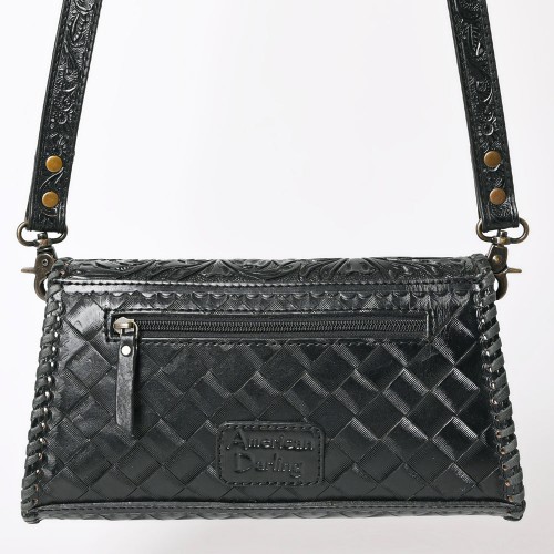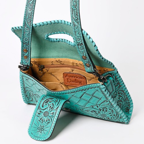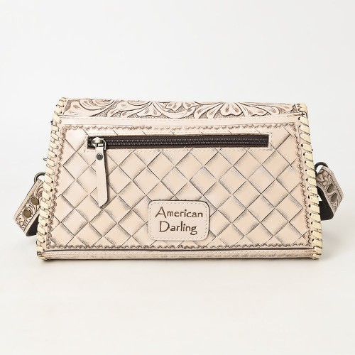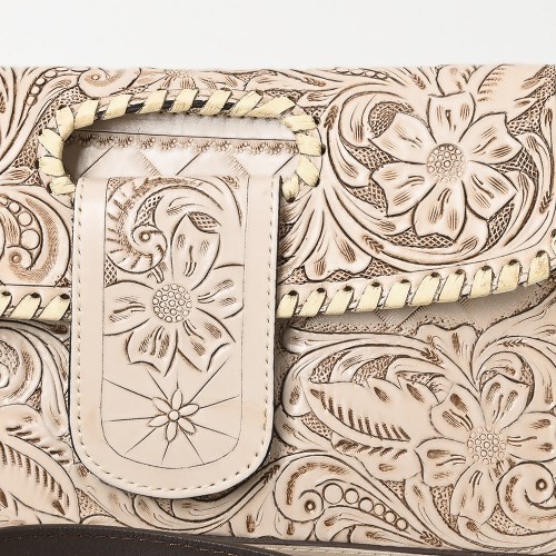 American Darling Western Leather Wallet Bag Hand Tooled Floral Carved Purse with Cutout Handle