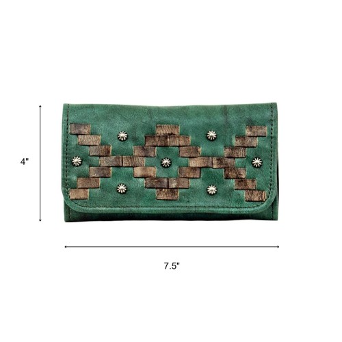 American West Womens Tribal Weave Light Turquoise Leather Trifold Wallet