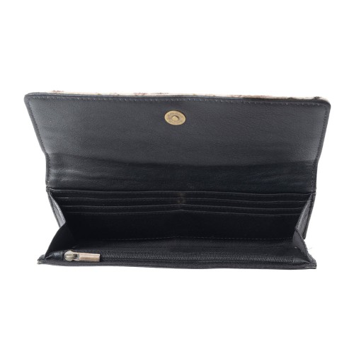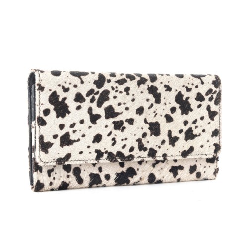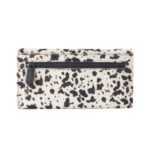 Make a bold statement with the Ampfibian Wallet, where rugged Western charm meets sleek, modern design. Featuring a striking white leather exterior with a black patch print, this Myra wallet is the ultimate blend of style and durability.