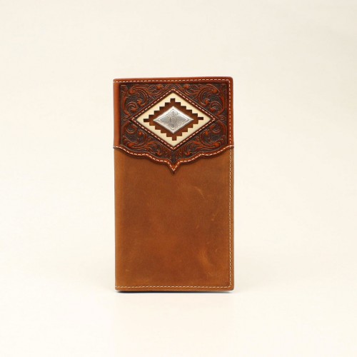 Ariat bifold wallet by M&F Western Products. This great wallet is made of two tone genuine brown leather and has the Ariat name and logo stamped on the top right corner. Slim fit design and made to last with heavy duty stitching. Multiple credit card and a removeable pass case.