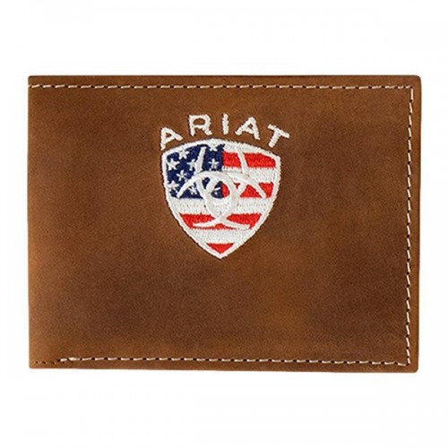 Stay organized with this trifold style Ariat wallet by M&F Western Products. Genuine leather with an Ariat logo and shield across the top. Features multiple compartments for your credit cards, cash and ID.