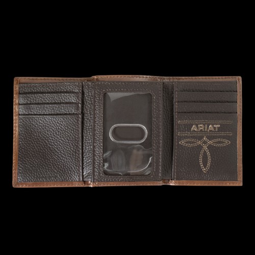 Ariat Men’s Southwestern Embroidered Brown Trifold Wallet A3560502