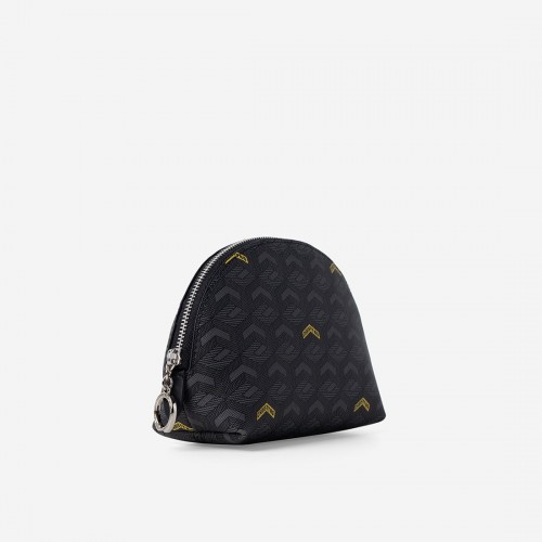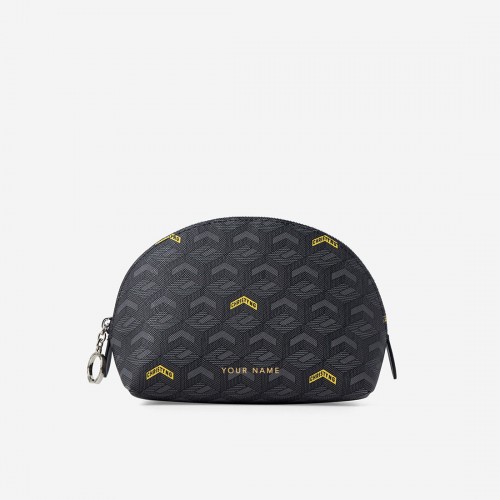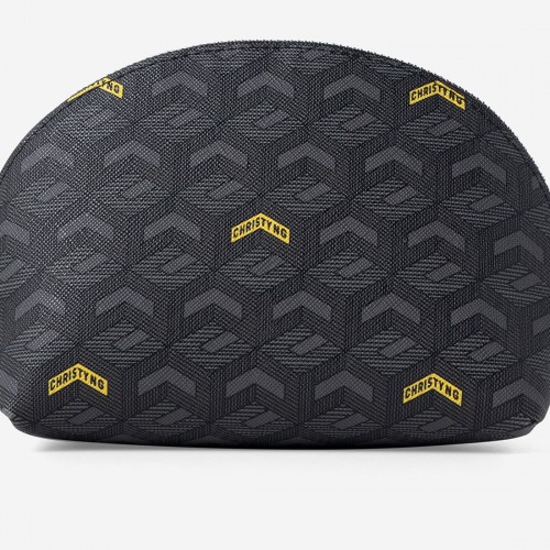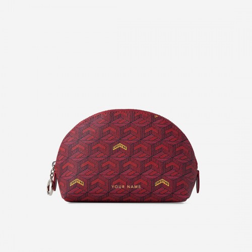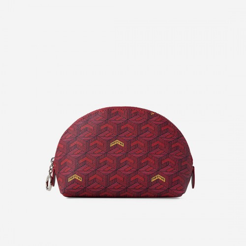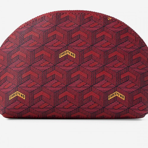 Elevate your vanity or travel kit with Christy Ng’s Arlet Pouch Bag, a chic daily essential. Available in festive hues of crimson and onyx, this semi-circular silhouette is defined by the brand’s signature cubic garden geometric monogram and punctuated with a polished silver-tone horseshoe zip pull. The secure top-zip opening reveals a surprisingly spacious interior for your beauty favorites, making it the perfect companion for the busy holiday season.