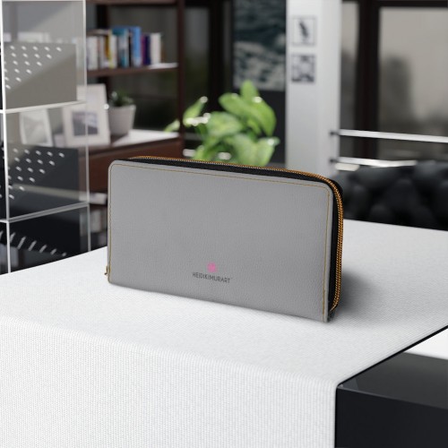 Ash Grey Color Zipper Wallet, Solid Color Long Compact Designer Premium Quality Women’s Wallet