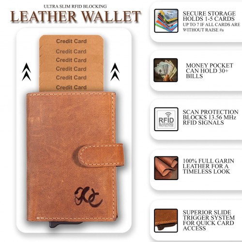 Auto Pop-Up Design: Our wallet is equipped with a nifty auto pop-up feature. With a simple push, your cards fan out, making it a cinch to pick the one you need. Despite its compact 4″x3″ size, it easily fits your pocket or bag, making it an excellent choice for the on-the-go individual.