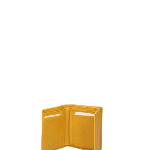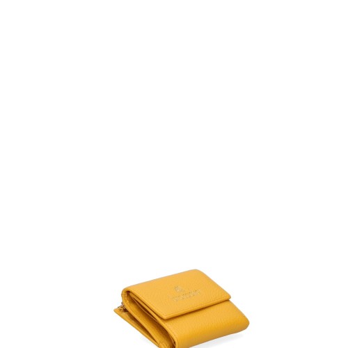Portafoglio da donna. La chiusura è con bottone a pressione. Le tasche interne sono portacarte e porta banconote. Le tasche esterne sono una posteriore con zip. La tracolla è assente. Il manico è assente. Gli scomparti interni sono uno. Il materiale esterno è 100% Vera Pelle. Internamente è 100% Poliuretanica. Misure: 11×8,5×4 cm . Made in Italy