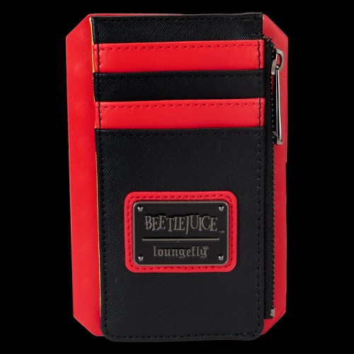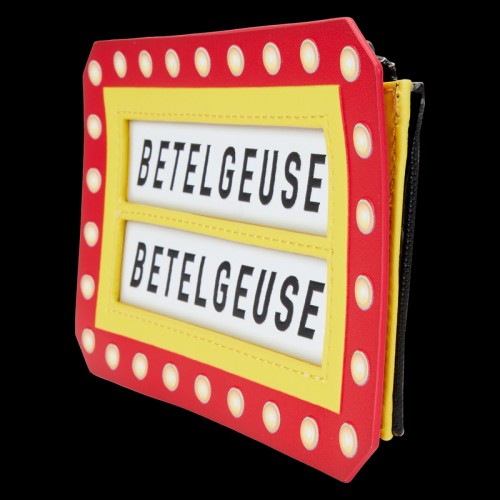 One…two… Say it one more time and follow the sign. Our Beetlejuice Large Card Holder is ready for fun and adventures. Store smaller items on your journeys in the zipped compartment, and the slots on the back are perfect for securing key cards, business cards, credit cards, or your ID. The front features the “marquee” sign from the movie that advertises, “Betelgeuse, Betelgeuse.” In the dark, the “light bulbs” around the sign glow. Secure your valuables and make a hauntingly delightful impression wherever you go.