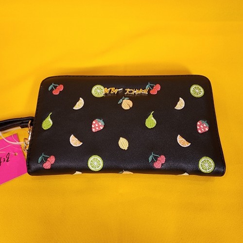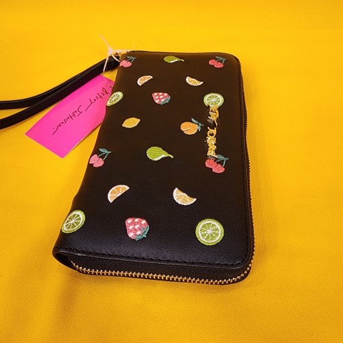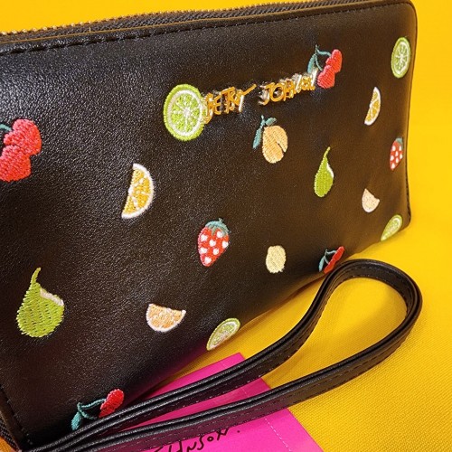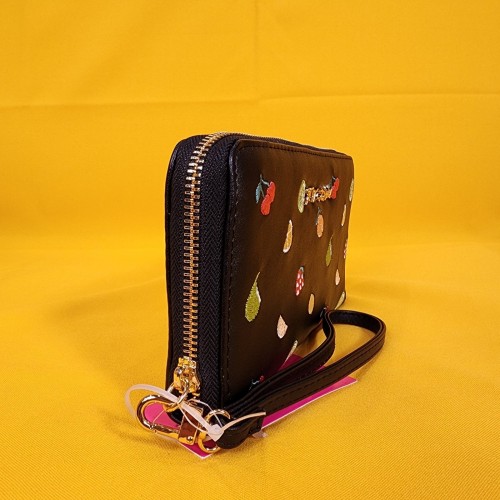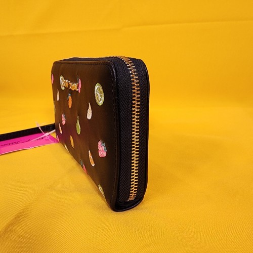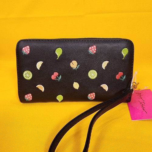 Betsey Johnson Black Fruit AOP Cherry Embroidered Wallet Wristlet Zip Around