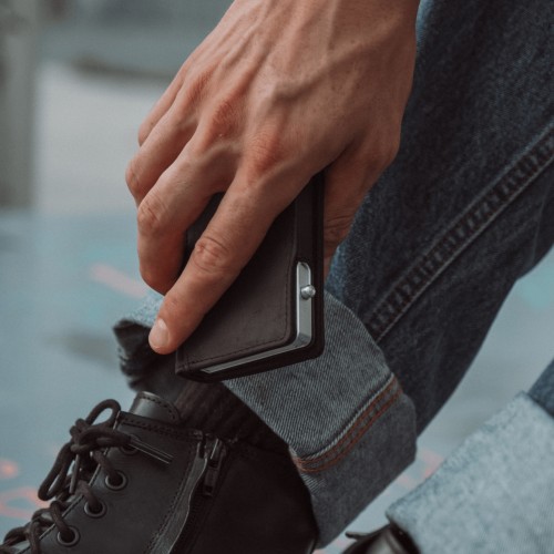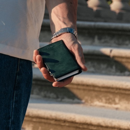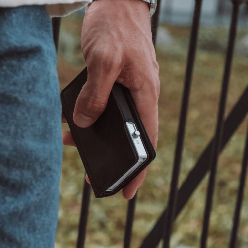 The wallet seamlessly combines form and function, comfortably holding up to 10 cards and cash. Small design details, such as a notch on the back for smooth switch operation and a metal plate for added security, showcase our commitment to a flawless user experience.