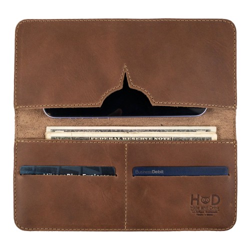 Introducing the exquisite Bifold Wallet for Cellphone by Hide & Drink, a perfect union of style and functionality. Crafted from premium Full Grain Leather, this wallet is designed for those who value both durability and elegance. Handmade in La Antigua Guatemala and Oaxaca Mexico, each piece is a testament to the skill of local artisans who are dedicated to their craft.