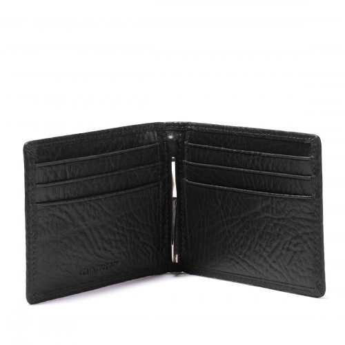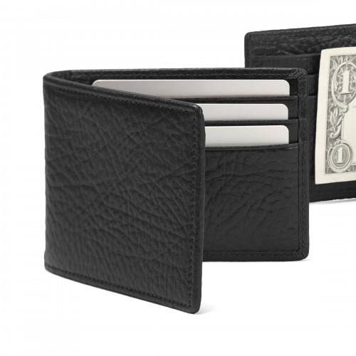 The Bifold with Money Clip features a slim, streamlined silhouette with a built-in metal money clip at the center fold in place of a traditional bill compartment. Card slots on either side keep credit cards and IDs organized, while two interior pockets offer space for receipts or less-used cards. Designed for those who prefer a classic bifold feel with a more simplified carry.
