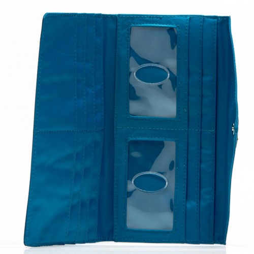 This sleek clutch-like billfold wallet is a modified version of the classic women’s long wallet – but more clever of course! Big Skinny’s best-selling Slimvelope is now also available with RFID blocking material to help prevent data thieves from getting your information. There are 3 long sections for cash, receipts, etc. Pockets and billfold are lined with a non-slip interior to prevent your goods from succumbing to gravity. Its clever divide-and-conquor design strategy keeps your items organized in a flat plane, instead of stacked on top of each other. Stays flat no matter what you add to it, even when the large coin section on the reverse is full! Neat little magnetic snap closure is strong enough to keep your wallet closed even when it’s jostled around in your bag. Crafted from machine-washable nylon microfiber. *** Please note due to global supply issues both zippers and pulls may differ from the photos above.