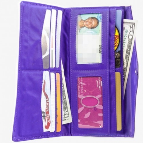 - small, flat magnetic closure keeps wallet closed even in the sloppiest bag