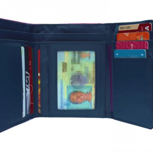 This is almost a cross between the high capacity of our Monte Cougar wallet and an expanded version of our regular tri-fold wallet but it leans toward the tri-fold wallet side making it more compact. A good mid-sized wallet, this all-purpose tri-fold wallet holds about 25-30 plastic cards with two deep sections for your plethora of $100 bills, Whole Foods coupons, and Saks Fifth Avenue receipts. The zippered compartment on the back of this tri-fold wallet is roomy enough for a large handful of change, and the small magnetic closure keeps the whole wallet securely shut when it’s being jostled around in your bag or bouncing around on the bottom of your butt (yes it fits in male back pockets easily also). Crafted from ultra-thin, durable, machine-washable, nylon micro-fiber. P.s. trivia, Trixie was Speed Racer’s hot girlfriend. Features: 10 credit card pockets hold about 3 plastic cards each clear ID pocket holds about 3 plastic cards 2 separated billfold areas magnetic snap closure.
