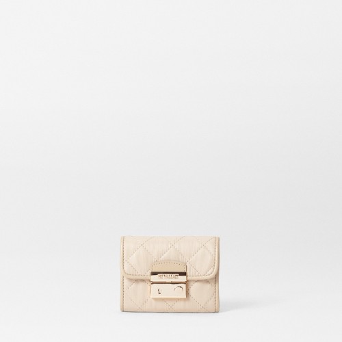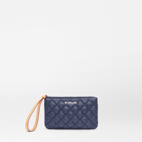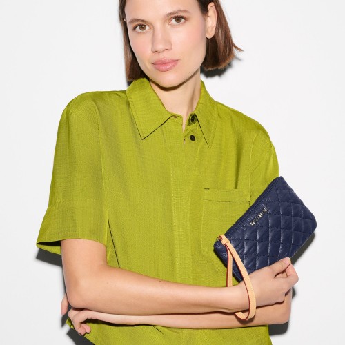 The Crosby Lock Wristlet is designed to carry just enough—cards, cash, maybe a lip balm—with a snap of polish. Its push-lock closure and leather-trimmed quilted nylon give it a pulled-together look that works solo or inside something bigger.
