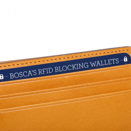 RFID Blocking! A simple, clean design and classic style are the hallmarks of this men’s bifold. The profile of this wallet is small, but the feature list is huge, including six card pockets to handle your ID and all of your debit, credit, loyalty, and business cards. There are also two additional stash pockets for your receipts and other necessary items, and a center cash well for all of your paper bills.