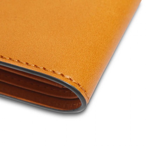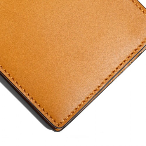 Britan is Italian, vegetable-tanned leather. It has a beautiful matte finish that accentuates its bright color. This leather also displays a stamp or monogram beautifully so don’t hesitate to personalize it. This wallet is a must-have for any man’s wardrobe.