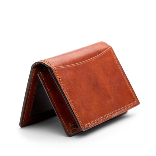 Though it started life as a card case, this popular piece is often used as athin, small wallet. The left features 2 pockets (1 flat, 1 gusset-style) RFIDblocking technology to help keep your personal infomation safe and an IDwindow. The gusset pocket can carry numerous business cards, credit cards, aswell as some folded currency