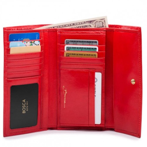 The series of Coral wallets in the Bella Stile Collection is an instant favorite. The rich color gives a sense of playfulness and elegance at the same time. The Coral Clutch is a modern take on a classic checkbook. There is no shortage of storage and organizational options when it comes to this clutch. There is a total of 12 pockets designed to hold all of your credit, debit, loyalty and membership cards and a clear ID window. In addition to the card pockets, there are two large pockets. There is a gusseted pocket in the center and a divided cash well for even more organization. The tri-fold design keeps the profile of this clutch slim leaving plenty of room in your bag or purse. As far as women’s wallets and clutches go, this is not only a fashion statement but an organizational dream come true.