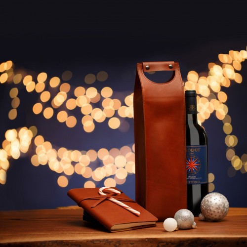 Show up to your next social event with the Bosca® Vachetta Single Wine Carrier.