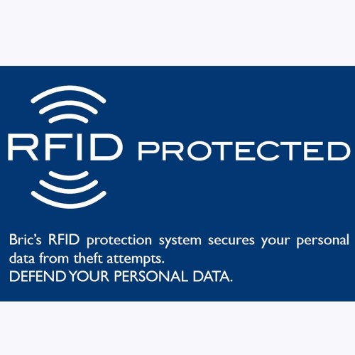 Saffiano leather card holder. Perfect for credit cards and business cards, this wallet comes with: a note compartment with an elegant, geometric weave lining, 10 credit card spaces, 4 of which are found in the note compartment, RFID protection. Comes in exclusive Bric’s packaging.