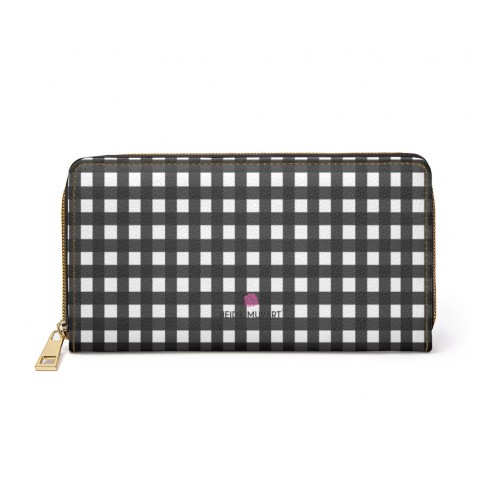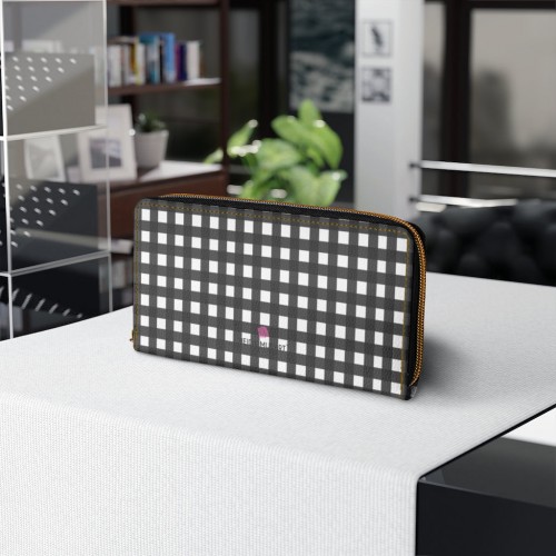 Buffalo Plaid White Zipper Wallet, Long Compact 7.87″ x 4.33″ Cruelty-Free Faux Leather Wallet with High Quality Nylon Zip & Metal Hardware