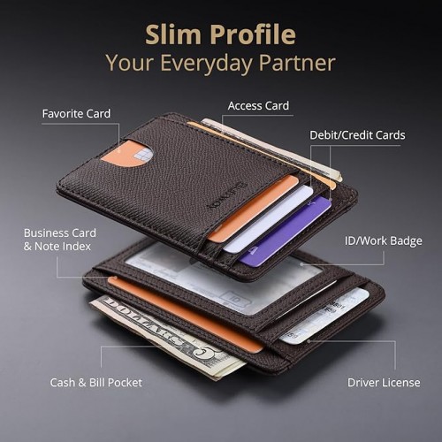 - SURPRISINGLY SPACIOUS: Though slim, it features 8 slots to easily organize your essentials. Comfortably holds your driver’s license, credit cards, debit cards, and membership cards, keeping everything you need right at your fingertips.