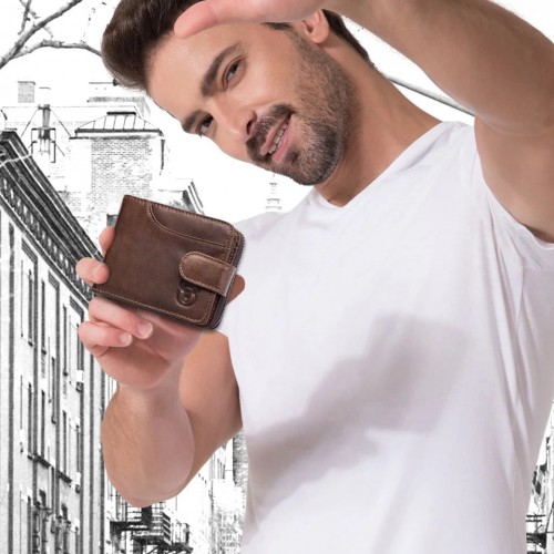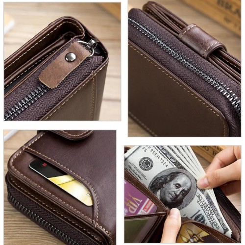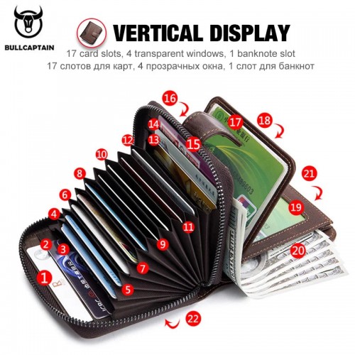 BULLCAPTAIN Business Men’s Wallet Genuine Leather Wallet Multi-Function Business Card Holder Small Card Box Leather Purse Man