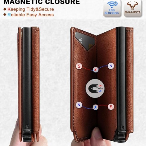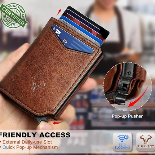 - REFINED STRUCTURE–The exterior card slot provides easy access to your everyday cards, while the flip page contains a convenient bill compartment. The pop-up card structure allows you to retrieve your cards effortlessly with a simple press of the button. Each function is thoughtfully placed for maximum convenience;