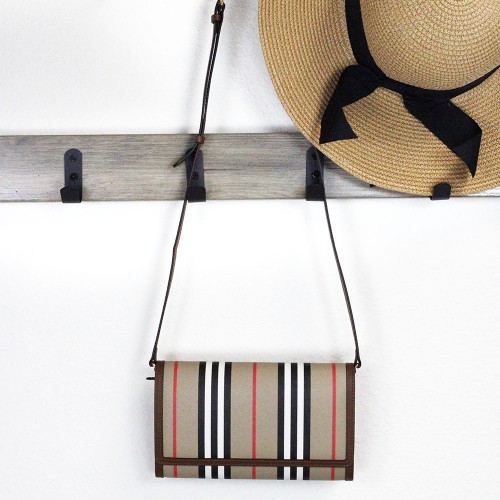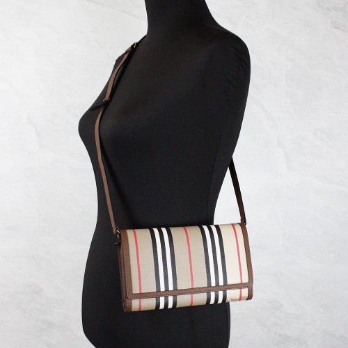 Burberry Hannah Icon Stripe Archive Tan Wallet Crossbody Bag