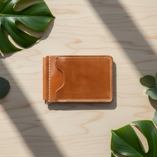 The Capone leather money clip offers a slim, minimalist design that provides quick and convenient access to your cards and cash. Expertly handcrafted in Chicago using renowned Horween leather, it combines durability with refined craftsmanship.