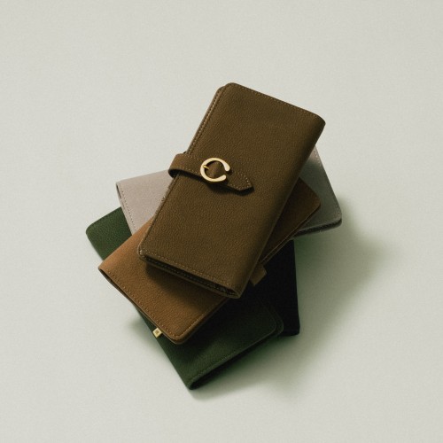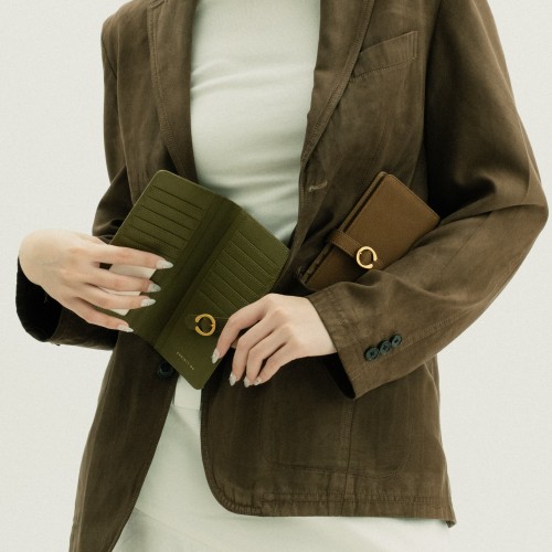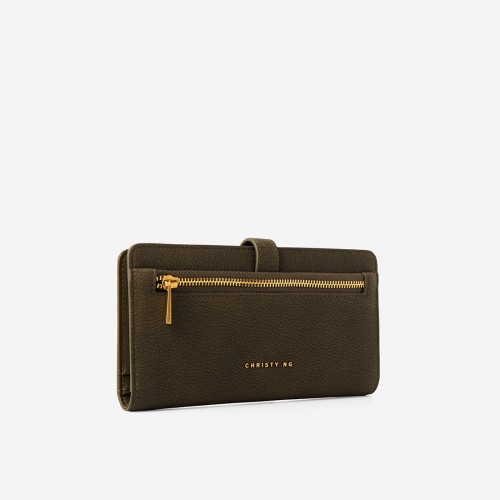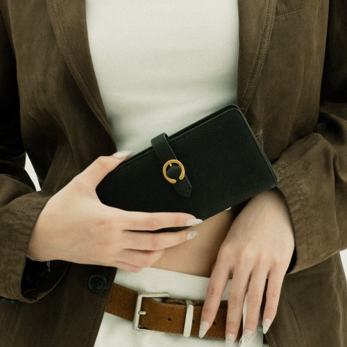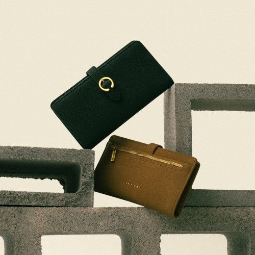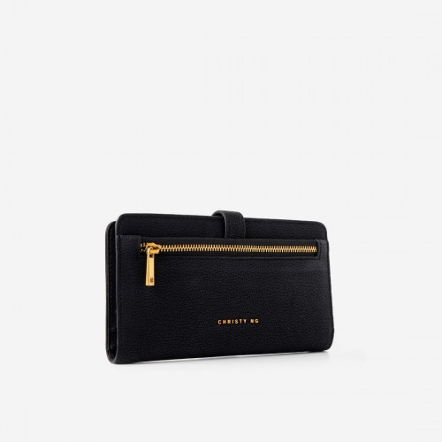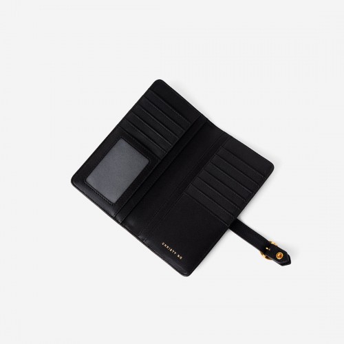 Christy Ng’s Cath Series are defined by the C-shaped logo buckle and chic, vintage styling. Crafted from textured vegan leather, this bifold silhouette unfolds to reveal 13 card slots and 4 slip pockets for notes and receipts, all secured by the slim buckled strap with snap button fastening. Slip in into our matching Cath Bag Collection.