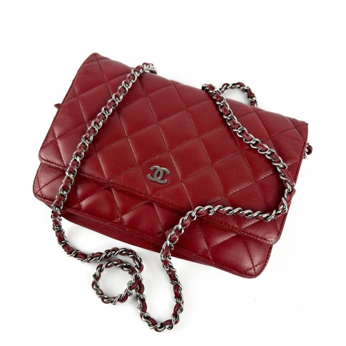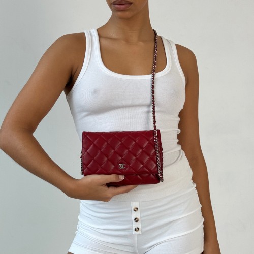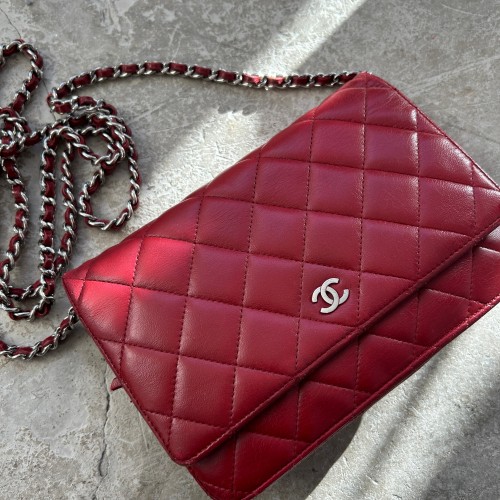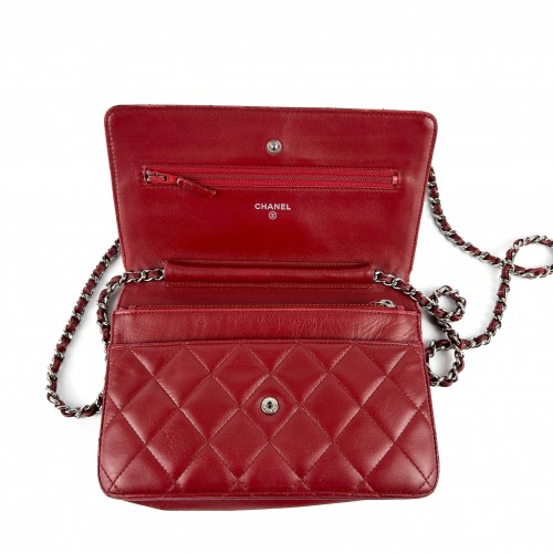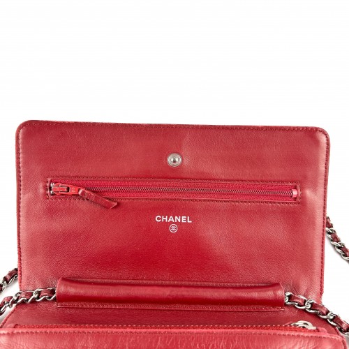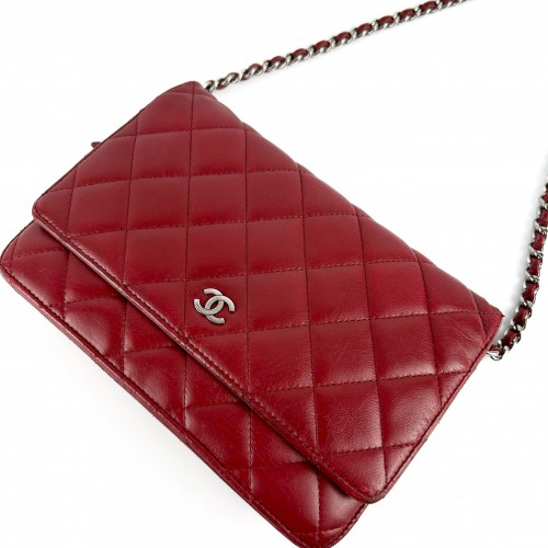 Chanel Red Lambskin Wallet on Chain (WOC) Bag SHW (2012)