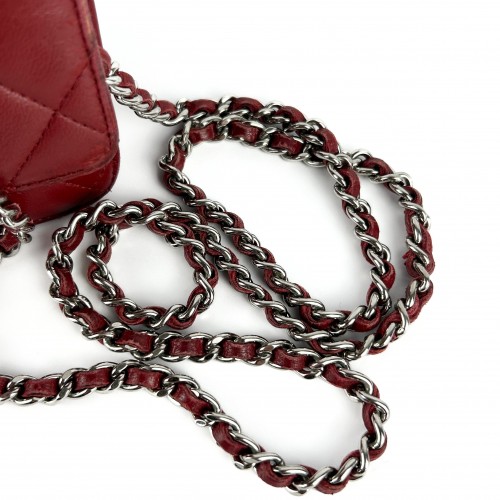 Features single flap popper button closure. Inside had several card holder spaces, space for your phone, keys etc and two zip ip compartments. RRP: Roughly £2,590, and increasing yearly. Measurements: Width (at widest point): 7.5” Length (at highest point): 5” Depth: up to 2.5” Chain length when worn: 24.5” Other details: Composition: lambskin Colour: red Hardware colour: silver Dust-bag: replacement unbranded dustbag provided. Authenticity Card: Not provided. External authentication certificate from Legit Grails provided. Condition Summary: Very Good Outside: light creasing to the leather. Some small scuffs/damage to the edges and corners throughout the piece. Very mild colour transfer/scuffing on the back of the bag. Light scratching to hardware. Inside: very good, lightly worn with a few small marks.