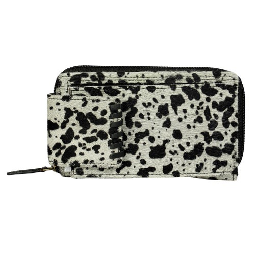 Small in size, big in style—the Myra Chirpy Wallet is the perfect western leather wallet for those who love compact convenience. Crafted from durable hairon leather, this cowgirl wallet features well-designed pockets to store your cash, a transparent ID card holder, and multiple credit card compartments for easy organization.