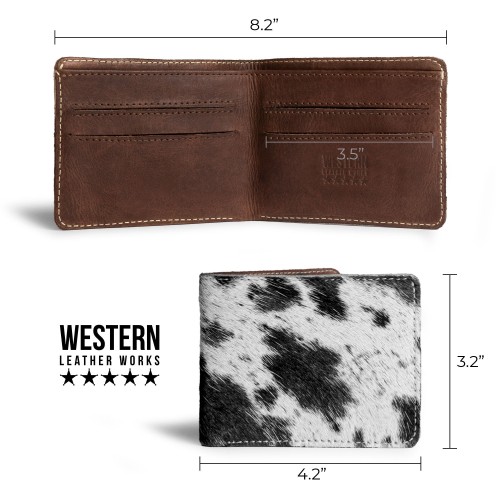 The Classic Cowboy Wallet is more than just a wallet; it’s a statement piece that speaks to your individuality. The hair-on-hide leather features beautiful variations that create an eye-catching effect, making it a standout item. Plus, with our fire-branded logo, you can showcase your love for quality American craftsmanship.