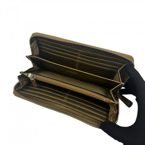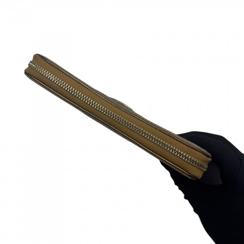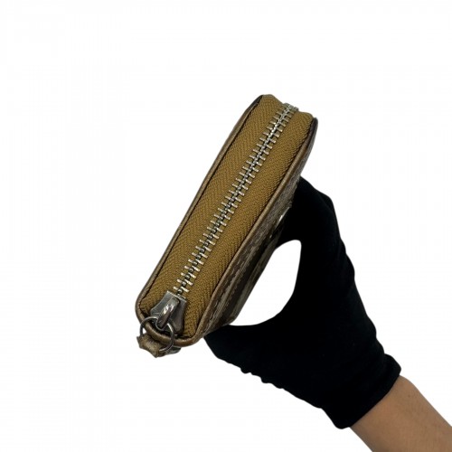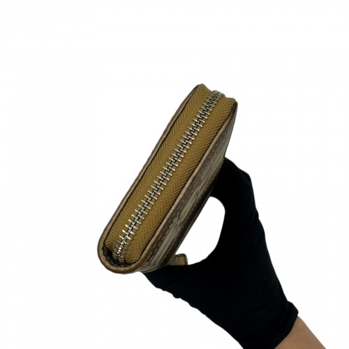 COACH KHAKI SIGNATURE GOLD ACCENT ZIP WALLET