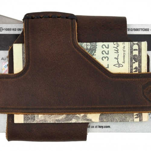 The bottom plate of the wallet is CNC precision machined stainless-steel, titanium or brass. The top plate is melonite-coated for durability. Each plate is wrapper in top-grain Horween leather, which will develop a beautiful patina over time. Ideal for use as a front pocket wallet, the sleek design and slim profile ensures a compact and lightweight everyday carry.