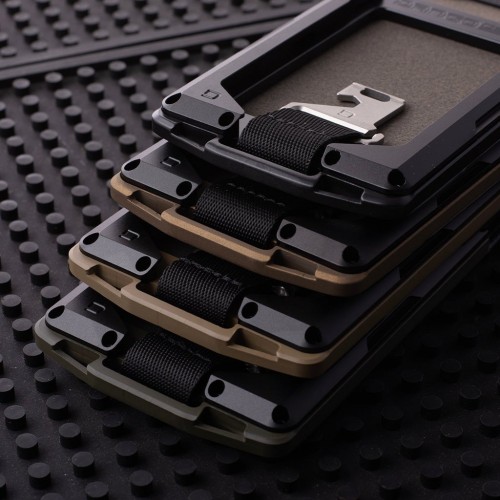 The M1 Lite chassis is coated with Cerakote bringing the machined aluminum to the next level. On one side of the M1 Wallet is Dango’s patented Rail System which can hold up to 4 cards. Bolted on the opposite side of the chassis is the traditional M1 water resistant DTEX bifold pocket which can hold up to an extra 8-10 cards depending on card thicknesses.