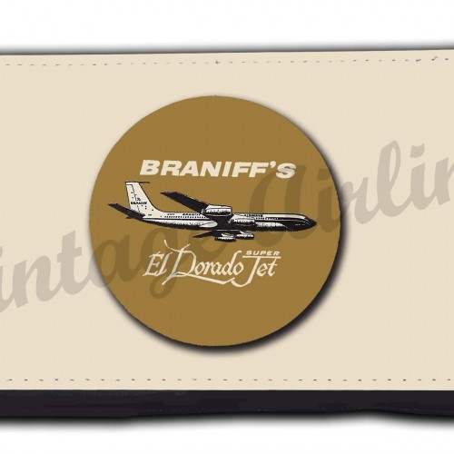 This wallet features the image of a Delta Air Lines dark blue 1950’s Bag Sticker.