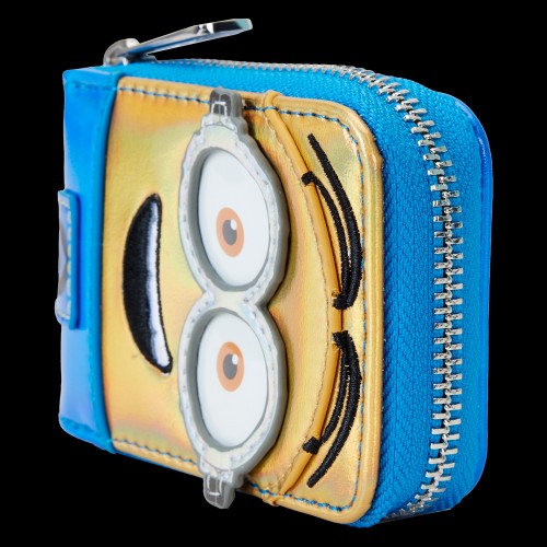 Despicable Me-themed wallet made of iridescent faux leather, featuring appliques, debossed details. This playful design with elements inspired by the Minions can add a fun and whimsical touch to your outfit.
