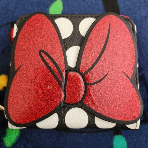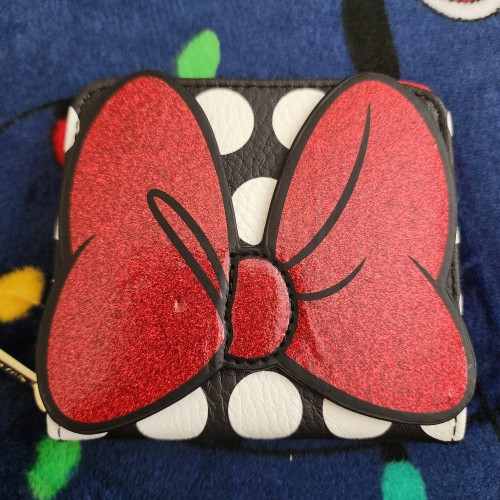 Awesome Disney Minnie Mouse Red Bow and Polka Dots Wallet. It has a zipper closure with divided sections that has slots for credit cards and there is a zipper pocket in the middle for coins. Great gift for your love one.