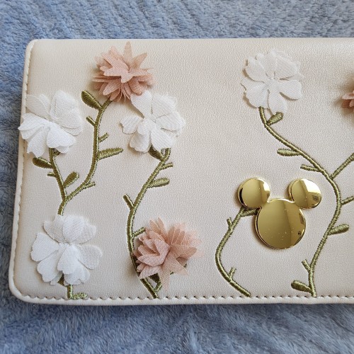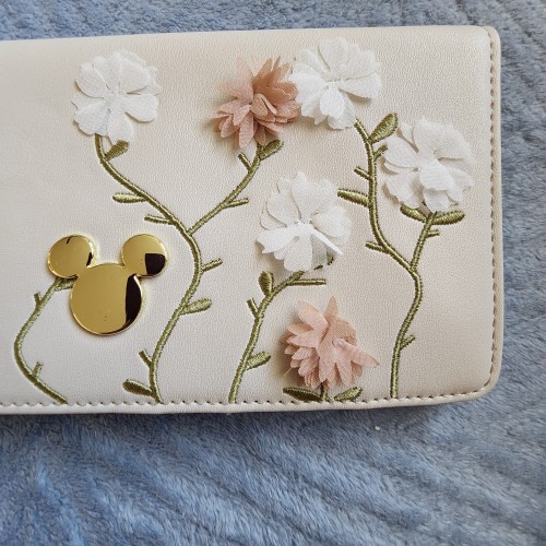 Disney Minnie Mouse Flowers and Vines Wallet. Featuring an allover design of 3D flowers and embroidered vines. With a snap closure, this wallet includes card slots, a clear ID sleeve, a bills compartment, and a perfect for your next adventure.