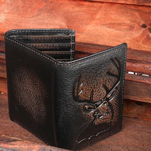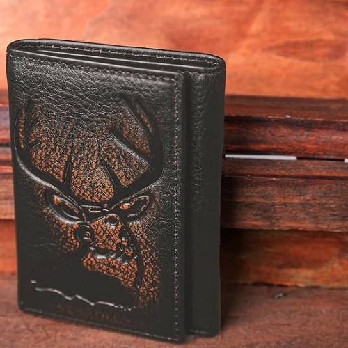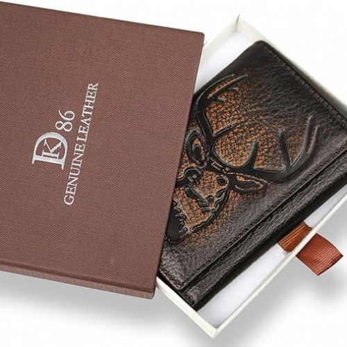 DK86 Deer Trifold Wallets for Men Full Grain Leather with Hand Burnished Tri-Fold Wallet RFID Blocking (Black and Brown)