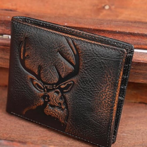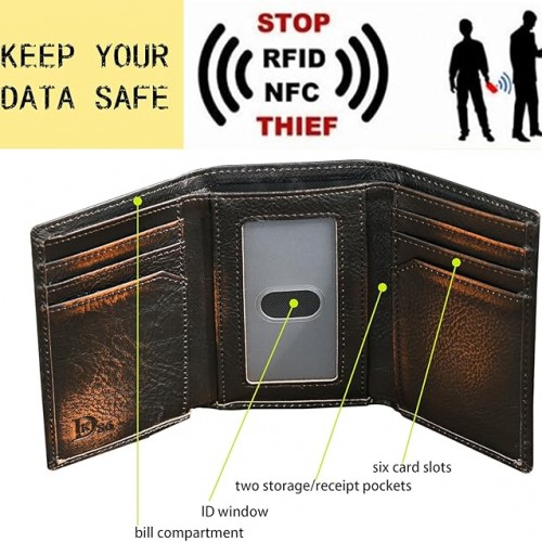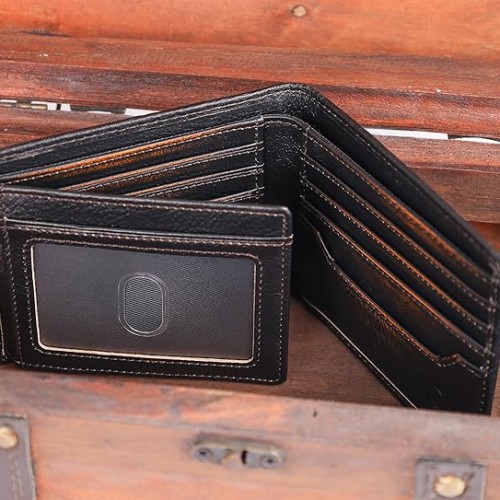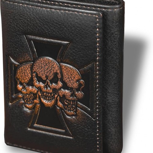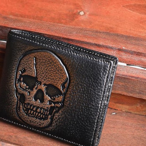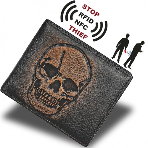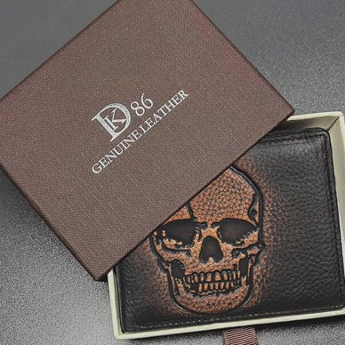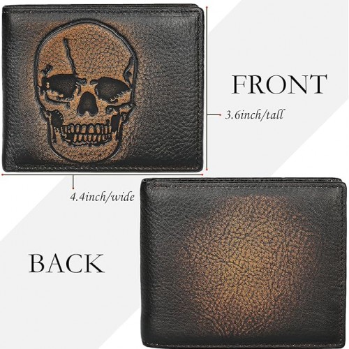 DK86 Skull Bifold Wallet for Men RFID Blocking Full Grain Leather With Hand Burnished Extra Capacity Multiple Card Slots with 2 ID Windows